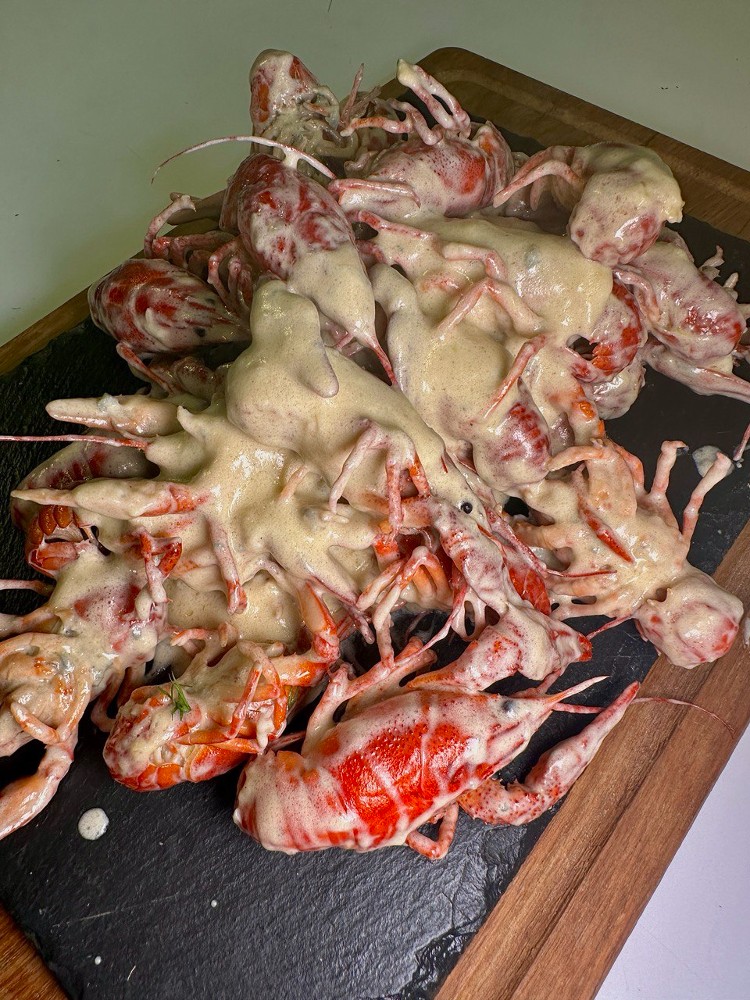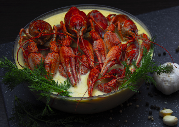 (L) Раки тушковані у сметані з часником та кукурудзою (Замовлення від 1 кг)