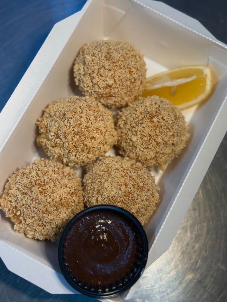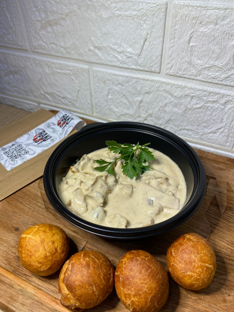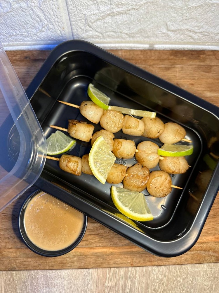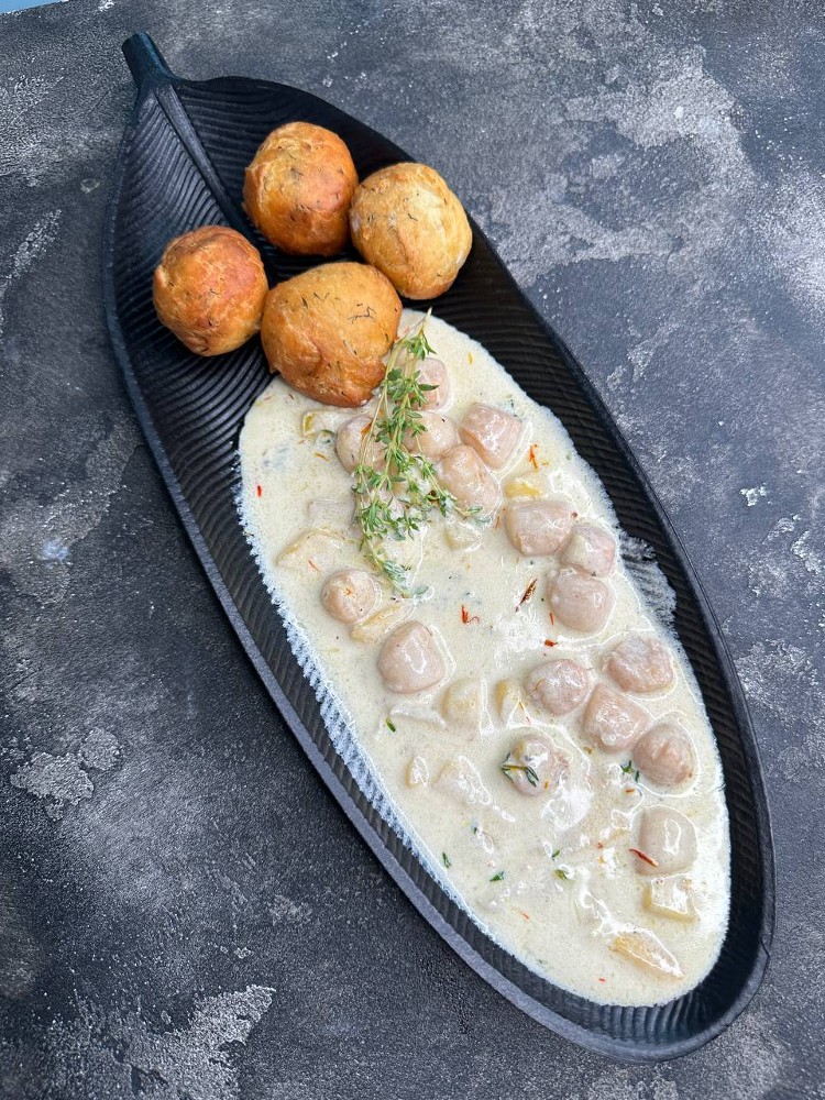 Гребінці у вершково-манговому соусі ( подаються з пончиками) (270 грам/50 грам)
