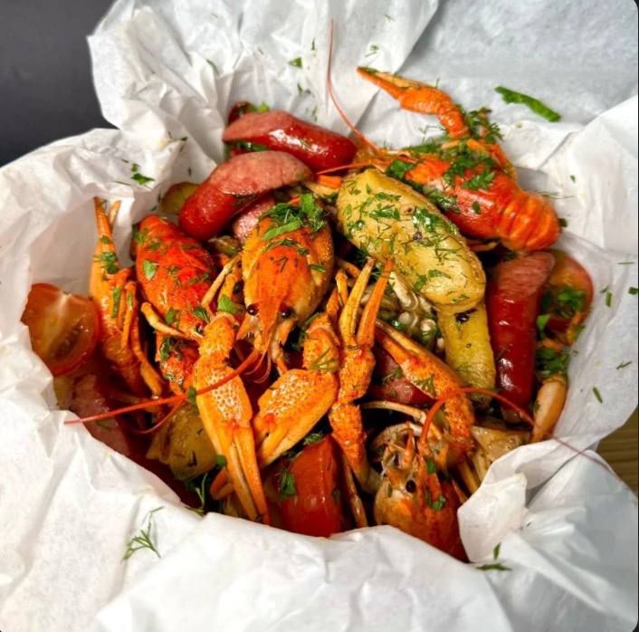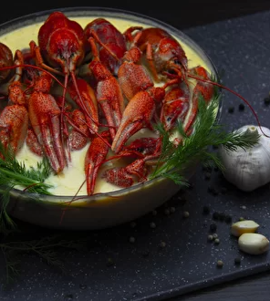 S) Раки тушковані у сметані з часником та кукурудзою (Замовлення від 1 кг)