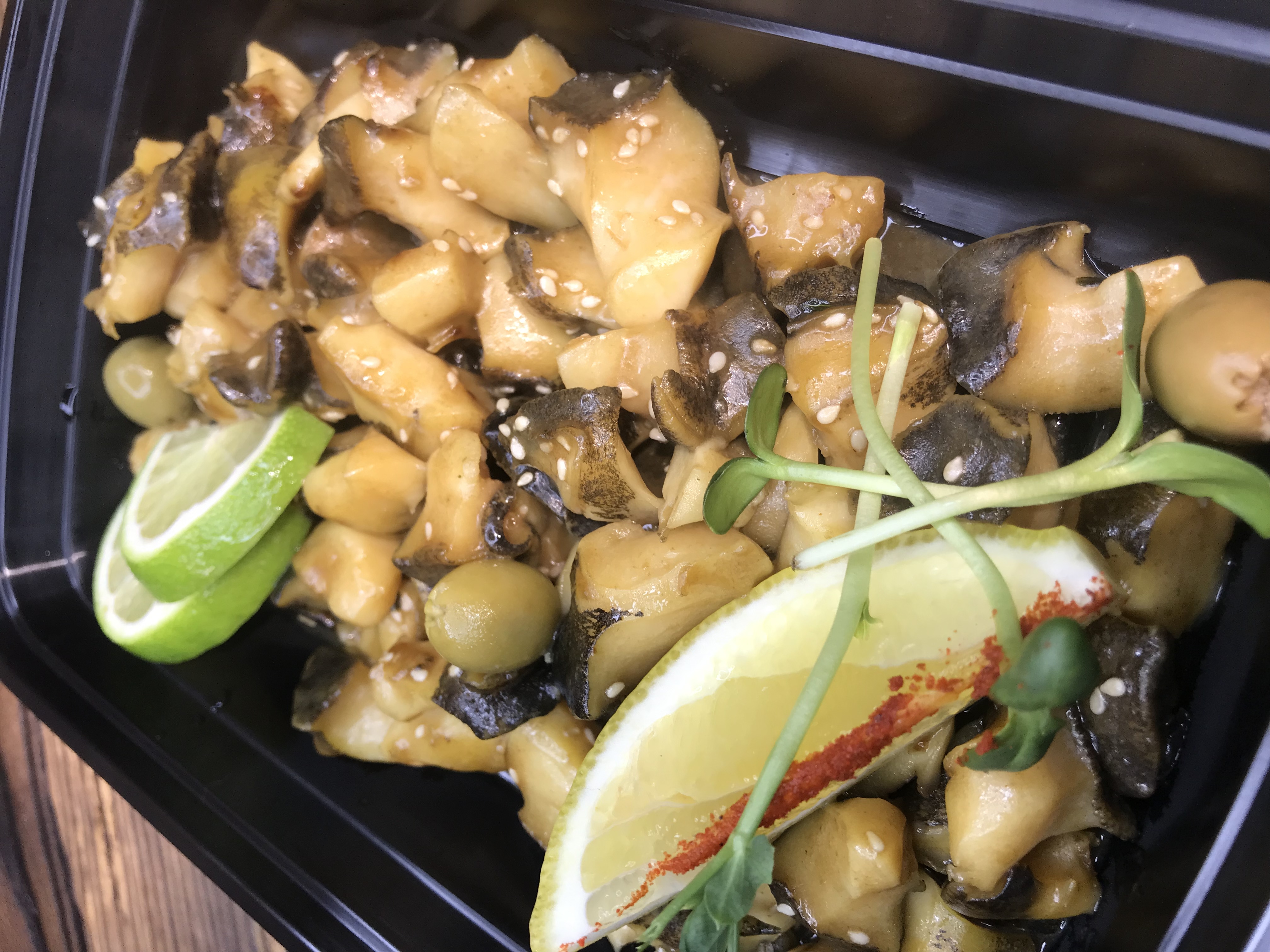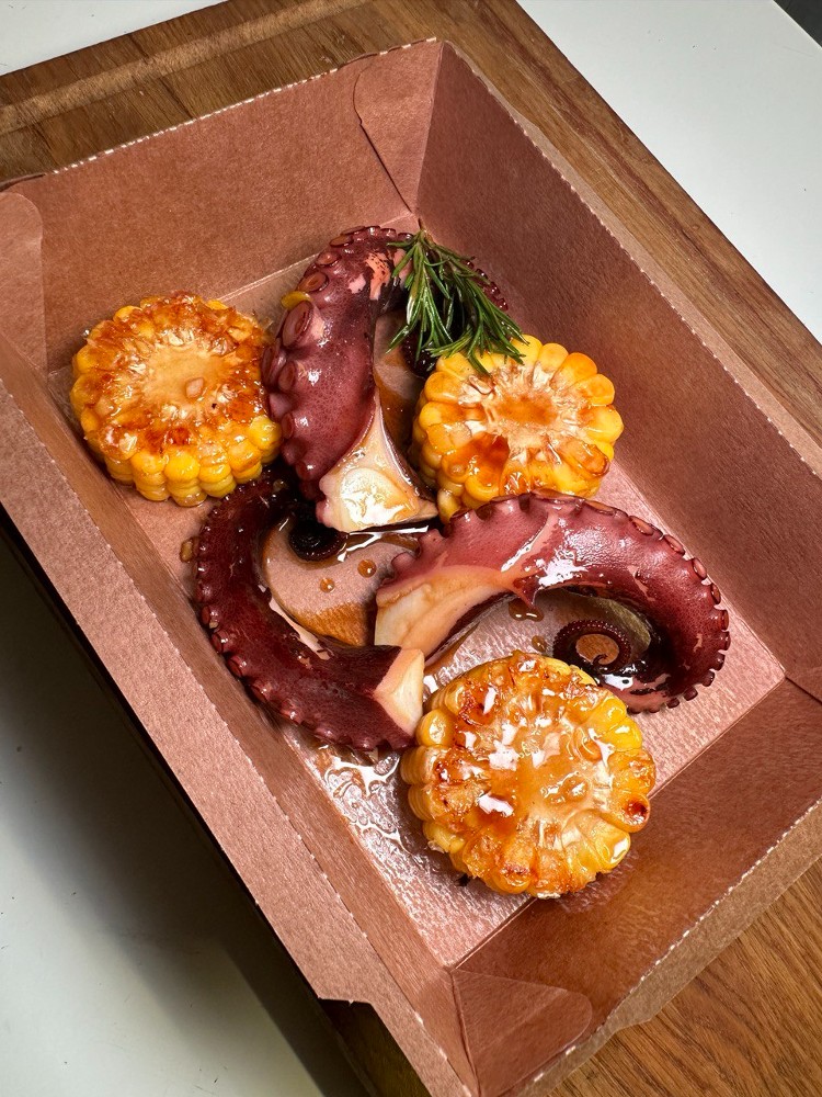 Восьминіг з кукурудзяними початками в апельсиновому соусі (~250г)