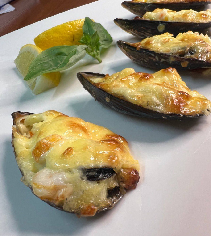 Мідії запечені з пармезаном та щучью ікрою ( 7 штук )