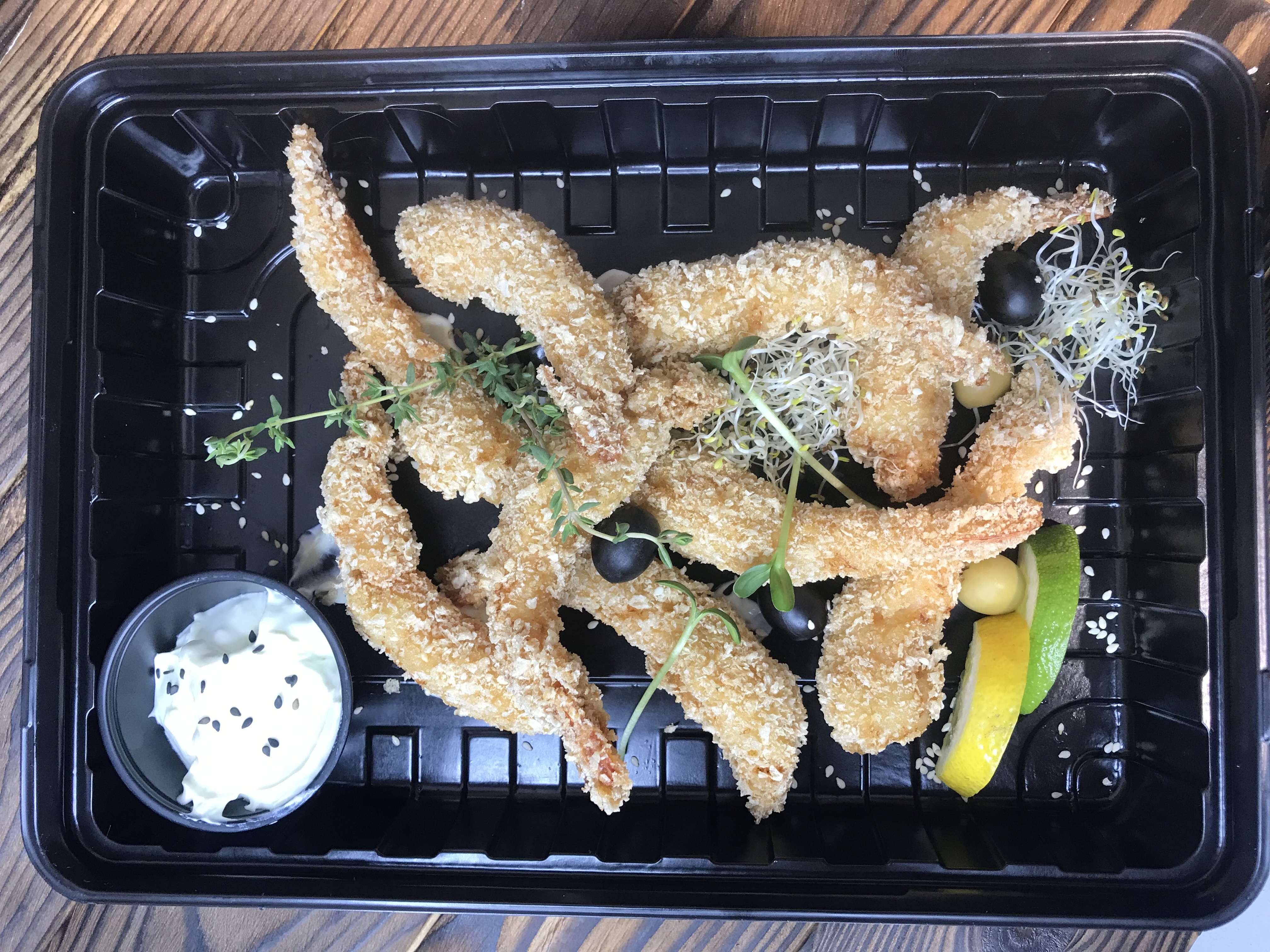 Хвости тигрової креветки "Болл" з полуничним соусом (5 штук)